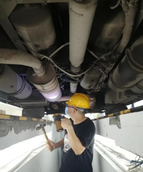 一把榔頭只為堅(jiān)守源頭安全。在車(chē)站車(chē)輛例檢處,例檢員劉海正在烈日下作業(yè),滾燙的水泥地面、發(fā)熱的客車(chē)底盤(pán)和客車(chē)尾氣讓車(chē)輛例檢臺(tái)溫度更高。劉海不停地在車(chē)輛底部鉆進(jìn)鉆出,從燈光、轉(zhuǎn)向、制動(dòng)、底盤(pán),到車(chē)胎、螺絲、安全帶、消防錘等,認(rèn)真檢查著每一個(gè)車(chē)輛部件。客車(chē)底部的高溫讓他下去一次便全身濕透一次,臉上的汗也順著頭發(fā)往下滴落。說(shuō)起自己的工作,劉海認(rèn)為雖然工作環(huán)境惡劣一些,但是與售票員、檢票員并沒(méi)有什么不一樣,只是分工不同,做好車(chē)輛例檢工作,保障客車(chē)運(yùn)行安全,是我們的責(zé)任,目的都是為旅客出行服務(wù)。